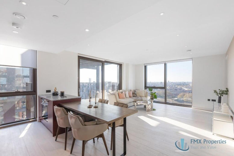 A stunning Thames River view two double bedroom + one single/study apartment with a stunning Thames River view located in a luxurious building within the exclusive 'Embassy Gardens development in Nine Elms.